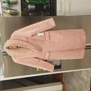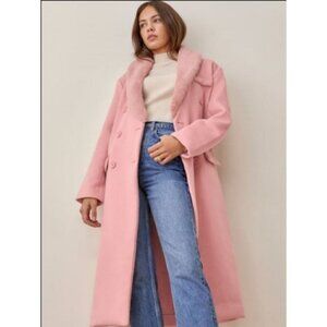 💕REFORMATION💕 Lester Coat ~ Faux Fur Shawl Collar Double Breasted Pink S NWT