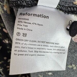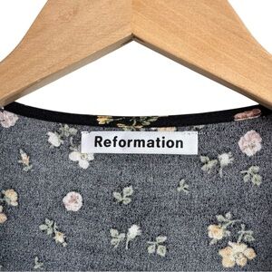 REFORMATION Locklin Midi Dress in Venezia Black Floral Crepe Short Sleeve XS 0