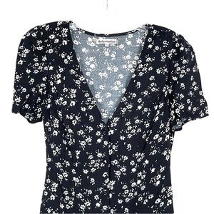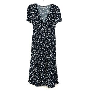 NWOT REFORMATION Locklin in Jasmine Black Floral Print Midi Shirt Dress (B541)