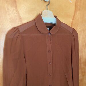 REFORMATION Long Sleeve Button Up Sheer Top Bow Cuffs Women's XS Rich Brown