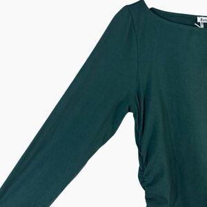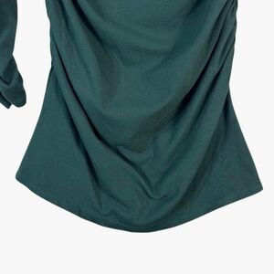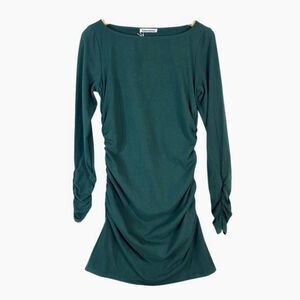 REFORMATION Lucio Stretch Knit Jersey Forest Green Ruched Mini Dress Size Large Long Sleeve
