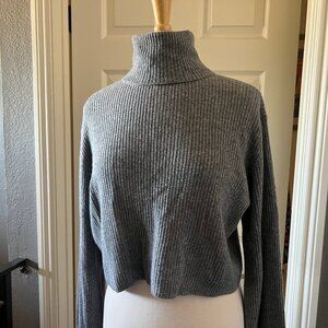 REFORMATION Luisa Cropped Ribbed Cashmere Turtleneck Sweater Gray Small