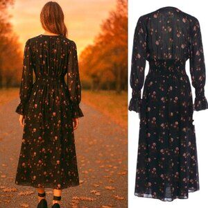 REFORMATION MAXI BLACK FLORAL PRAIRIE LACE UP CORSET TOP DRESS SZ. 2 EUC