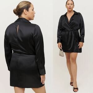 REFORMATION NWT Alaine 100% Silk Satin Wrap Mini Dress in Black Size 14