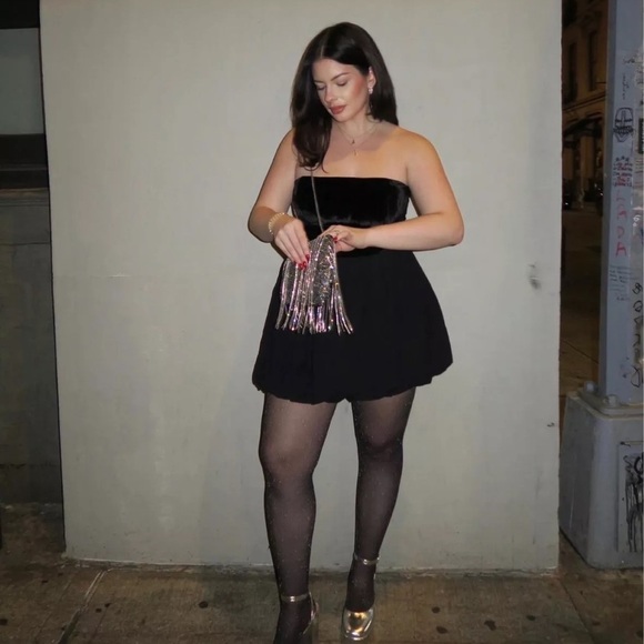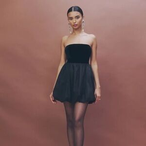 For an edgy yet romantic moment, look no further than the Reformation St. Louis Dress. The strapless velvet bodice is complimented by the silky bubble mini skirt for a silhouette that won't be missed.