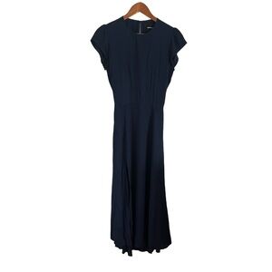 REFORMATION Navy Cap Sleeve High Slit Gavin Midi Dress