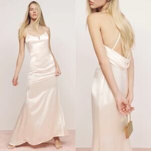 REFORMATION Oriana Draped Scoop Back Silk Maxi Gown