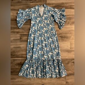 The REFORMATION Peridot dress in size 2 US is a stunning floral patterned, sleeveless dress made from viscose fabric. The dress features a midi length with a fit & flare style, perfect for various occasions like weddings, parties, or casual events during the summer and spring seasons. The multicolor design with a zip closure adds a touch of elegance to this stylish and trendy Reformation dress.