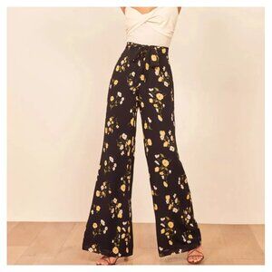 REFORMATION Piazza Black Floral Print Belted Wide Leg Palazzo Culotte Pant