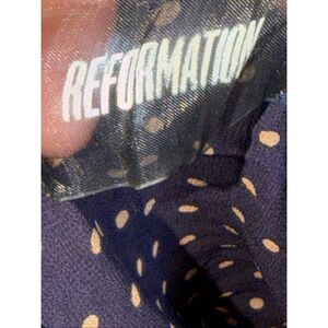 REFORMATION Polka Dot Midi Dress Preppy Classic Cottagecore Sz 6 Navy/Tan