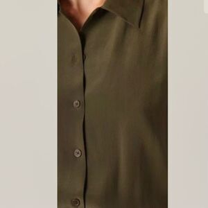 This adorable army green silk romper features a fold-over collar and a 5-button closure. Gathered elastic banding at waist and single-button closure at cutout back. Chic, sexy, and elegant- a true staple!