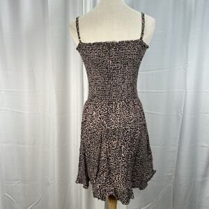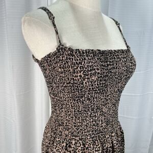 REFORMATION Rouen Bengal Leopard Linen Smocked Ruffle Mini Slip Dress Size 10
