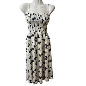 REFORMATION Sable Blueberries Dress XS White Smocked Midi Picnic Romantic Girly