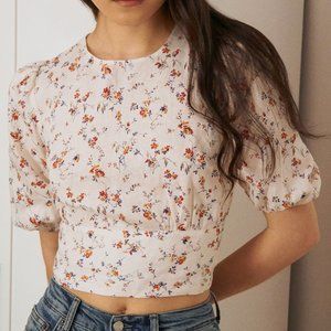 REFORMATION Seychelles Floral Linen Crop Top Small