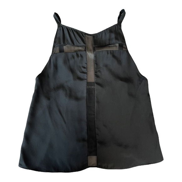 REFORMATION Silk Cami Tank Top Black Satin Sheer Cutout Detail Sleeveless XS EUC