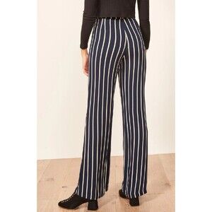 REFORMATION Sorrenti Capone Blue Striped High Rise Wide Leg Flare Pants Size 8