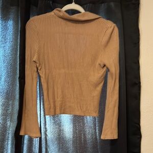 REFORMATION Tan Button-Up Ribbed Top