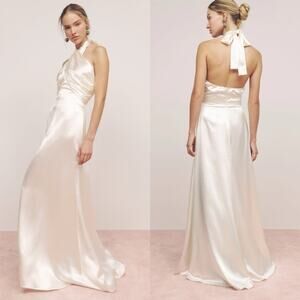 REFORMATION Veria Silk Charmeuse Halter Ivory Gown