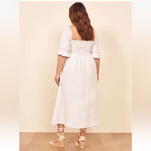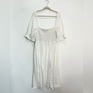 REFORMATION White MARABELLA Smocked Summer Linen Front Slit Midi Dress