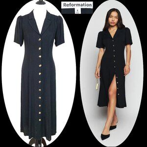 REFORMATION Wilde Puff-Sleeve Button-Front Midi Dress Goth Witchy Sz 8