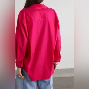 REFORMATION Will Organic Cotton Blend Poplin Shirt In Bright Pink