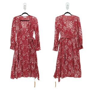 Details: REFORMATION Women L Susanna Dress Bryce Red Floral Wrap Midi V Neck NEW