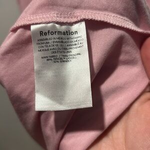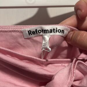 NWT Reformation Adalynn skirt set in pink. Flower detail in center of chest. Very soft and stretchy fabric. No callouts. Stock photo added for reference.