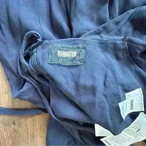 REFORMATION Maxi Dress in Navy size 4 with adjustable belt 100% viscose
