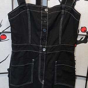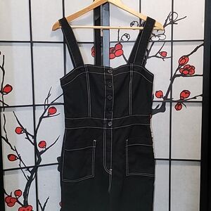 REFORMATION Black White Square Amory Top Stitching Overalls