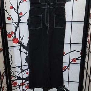 REFORMATION Black White Square Amory Top Stitching Wide P Overalls Jumpsuit 2