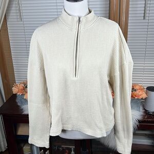 REFORMATION Yale Waffle Half Zip Neutral Pullover Top Size XL