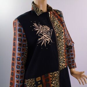 REGAL Vintage Zip Up Top Cheetah Embroidery