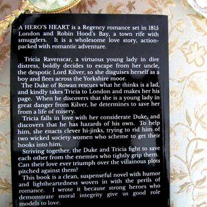 My pen name is Mellyora Ashley, and I wrote A HERO'S HEART. It's set in Robin Hood's Bay in Yorkshire and London in 1815. It's a page-turning romantic adventure with smuggling elements and society intrigues galore. Read the blurb in the third photo. Immerse yourself in a nice, long romantic escape. This book has been given 5-star reviews on Amazon.