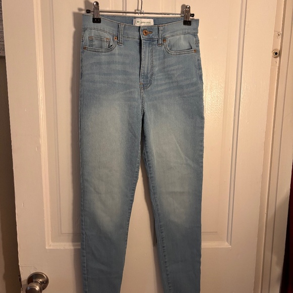 Soft and stretchy high-rise skinny jeans in a versatile light wash. Perfect for casual outfits, easy to pair with anything. Great pre-loved condition.