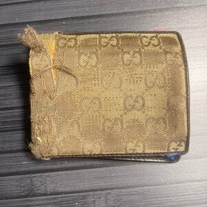 Gucci bifold wallet in signature GG canvas with leather trim. Classic and functional design, ideal for everyday use.