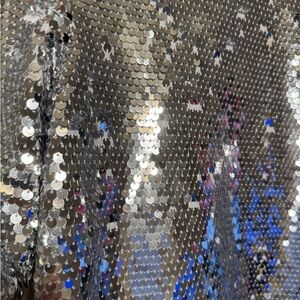 The Rehab Women's M Silver Glam Sequin Blouse is a glamorous top perfect for winter. Made from polyester, this blouse features short sleeves and a solid silver color with sequin accents. The metallic theme adds a touch of sparkle to your outfit, making it a great choice for the disco ball or holiday parties. With a regular fit and no vintage style, this blouse from Rehab is a stylish addition to any winter wardrobe.