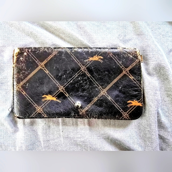 Vintage stylish Longchamp black wallet with gold accents. Perfect for rehab.