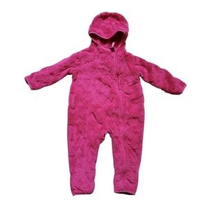 REI Baby Toddler Snow Suit Bunting One Piece Hooded Pink Hearts Girl 12 Months