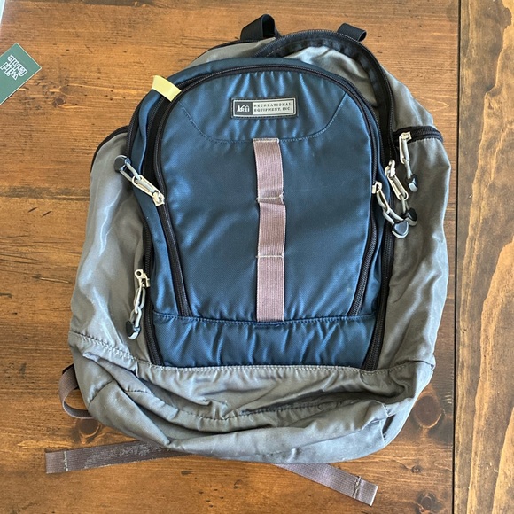 REI backpack with two main pockets, as well as pockets on both sides. A medium sized backpack. EUC, but note the areas of wear/dirt. Still is great condition! Offers always welcome.