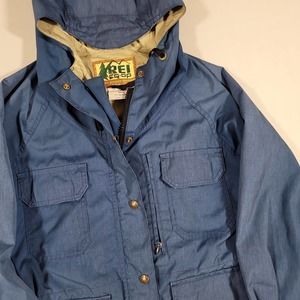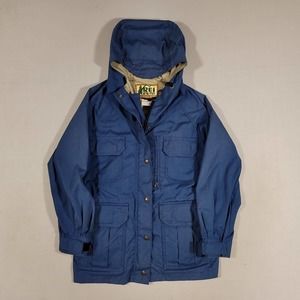 REI Blue Hooded Jacket Womens Small Made USA Windbreaker Rain Outdoor