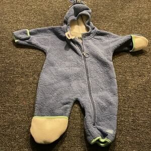 REI Brand Infant Fleece Bunting Size 3 Months Blue Floral Embossed Zip Up Hooded