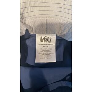 REI Built On Purpose 4Y-7Y sun hat with chin strap fold up or down blue gray
