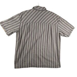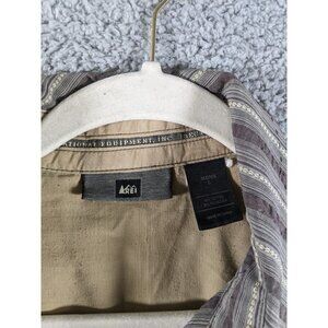 REI Button Shirt Mens Large Cotton Poly Green Gray Stripe Short Sleeve