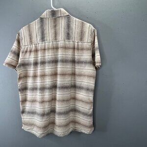 REI Button Up Shirt M Men Organic Cotton Hemp Striped Short Sleeve Tan Beige