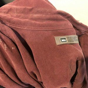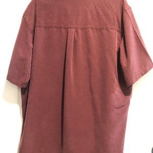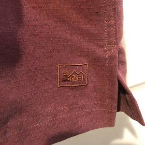 REI Button Up Short Sleeve Burgundy Rayon XL Shirt Relaxed Fit, Preowned