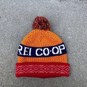 REI COOP Kids 7-14Y Pom Beanie Winter Orange Cuffed Knit Snow Hat Cap