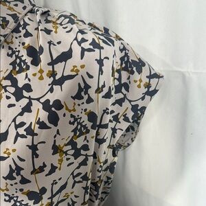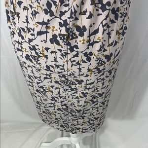 Color/Pattern: Beige with navy & mustard abstract floral print