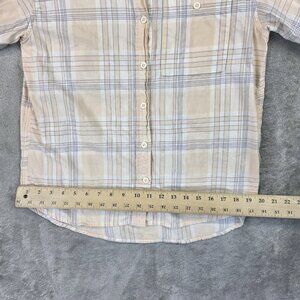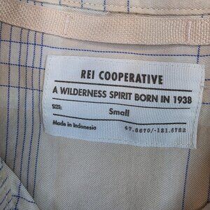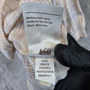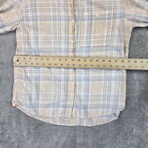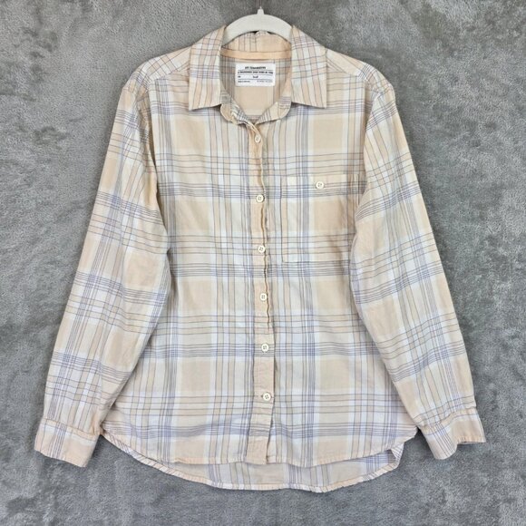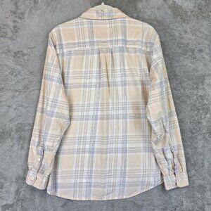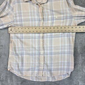 REI Co Op Shirt Womens Small Peach Blue Plaid Long Sleeve Button Front Cotton