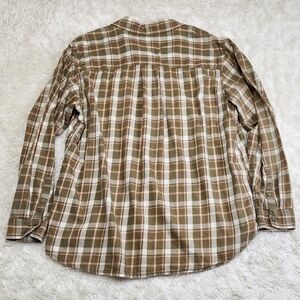 REI Co-Op Northwoods Button-up Shirt Tan Green Pink Sz Large Plaid 100% Cotton