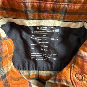 REI Co-Op Womens Orange Plaid Button-Up Shirt Small Cotton Long Sleeve Pockets